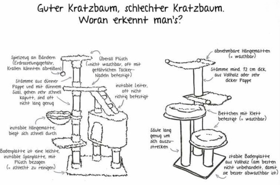 Spiel-, Aussichtsplatz und Rückzugsort. Er sollte stabil sein und zum Kratzen anregen, um Möbelstücke zu schonen :-) .