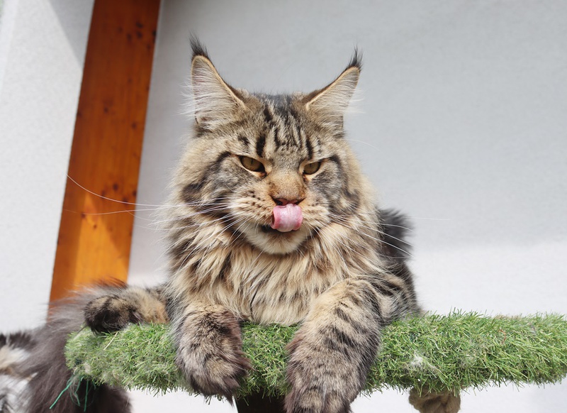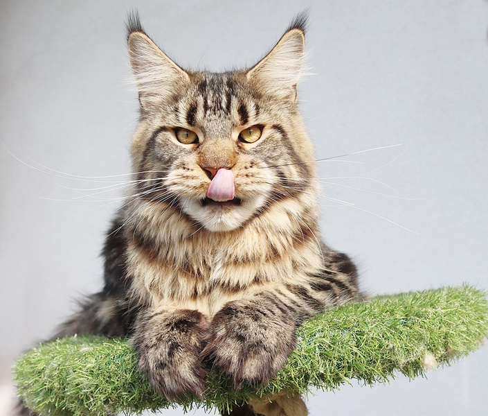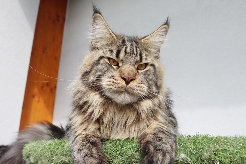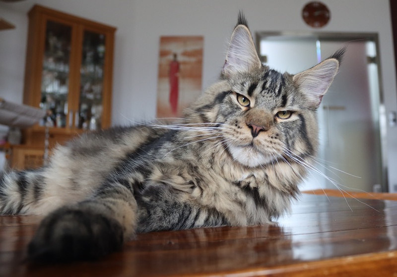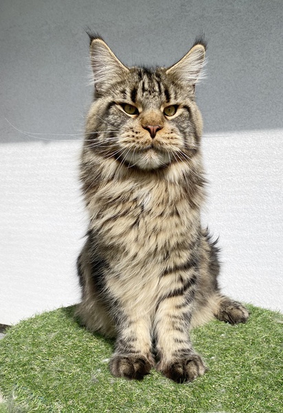 Kid ist ein sehr typvoller Kater mit einer tollen Schnauze, gutem Kinn, einem sehr korrekten Profil und gut gesetzten, großen Ohren. Kid hat einen sehr stämmigen und massiven Körperbau und richtig