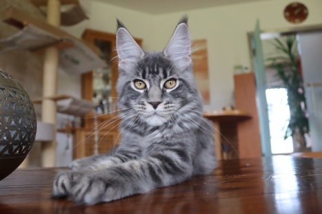 Sie ist ein sehr großes und kräftiges Mädel und hat alles, was wir bei einer typvollen Maine Coon sehen wollen.