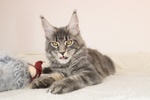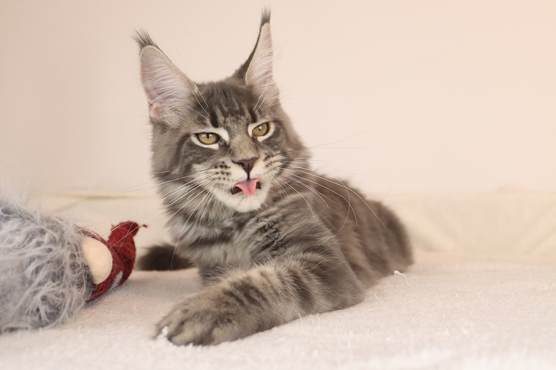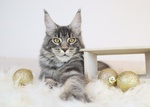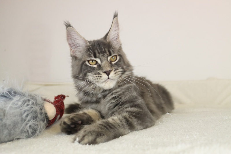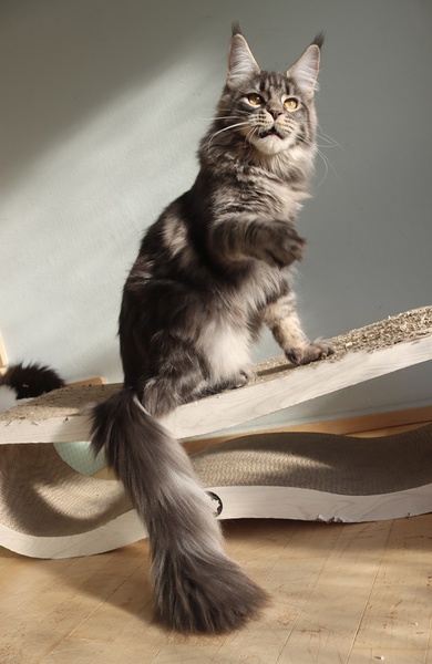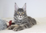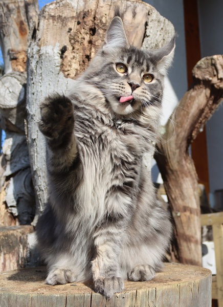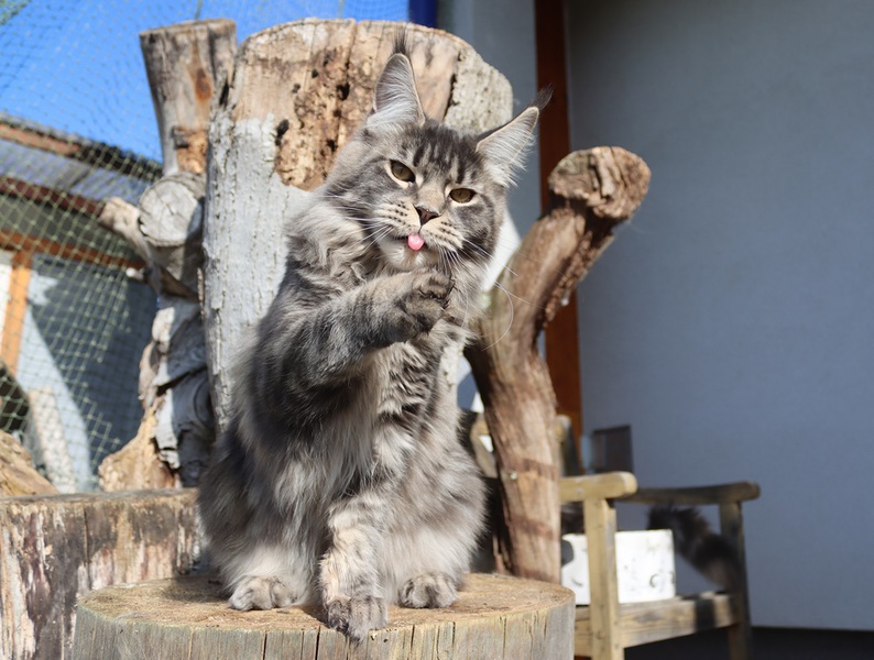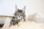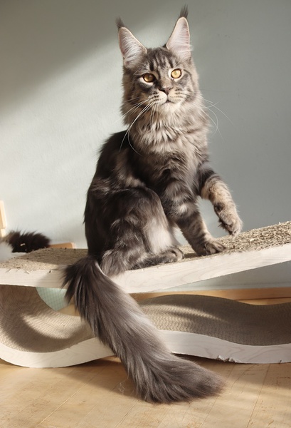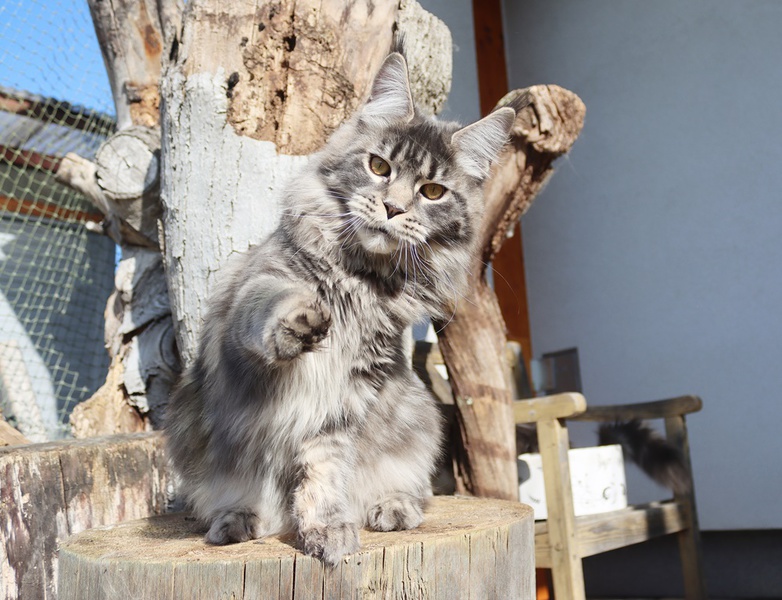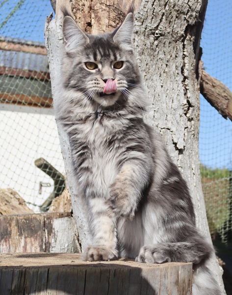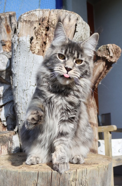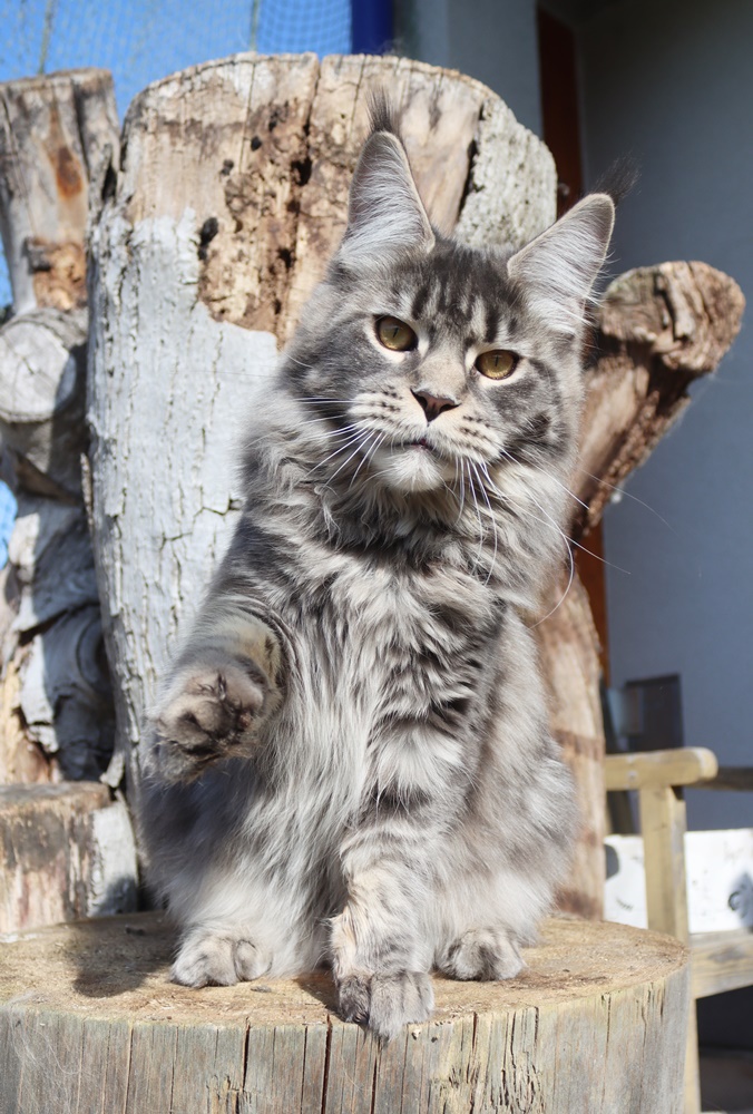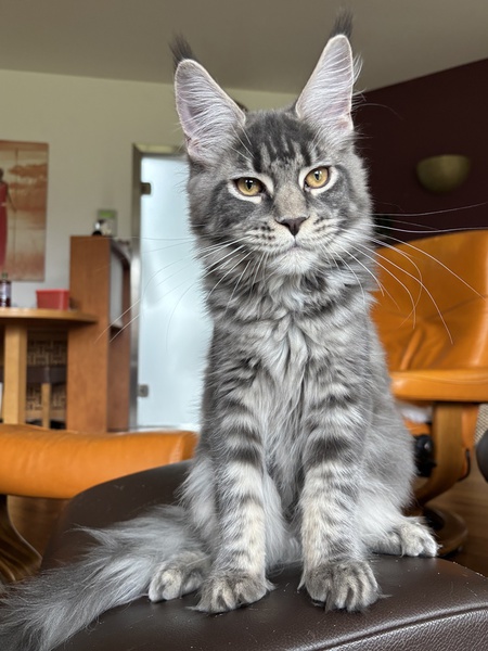 Nena ist ein sehr großes und kräftiges Mädel und hat alles, was wir bei einer typvollen Maine Coon sehen wollen.